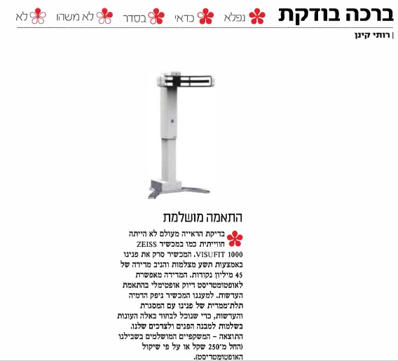 ברכה בודקת, התאמה מושלמת וציון נפלא למכשיר הבדיקה המתקדם ביותר של חברת צייס, VISUFIT 1000
