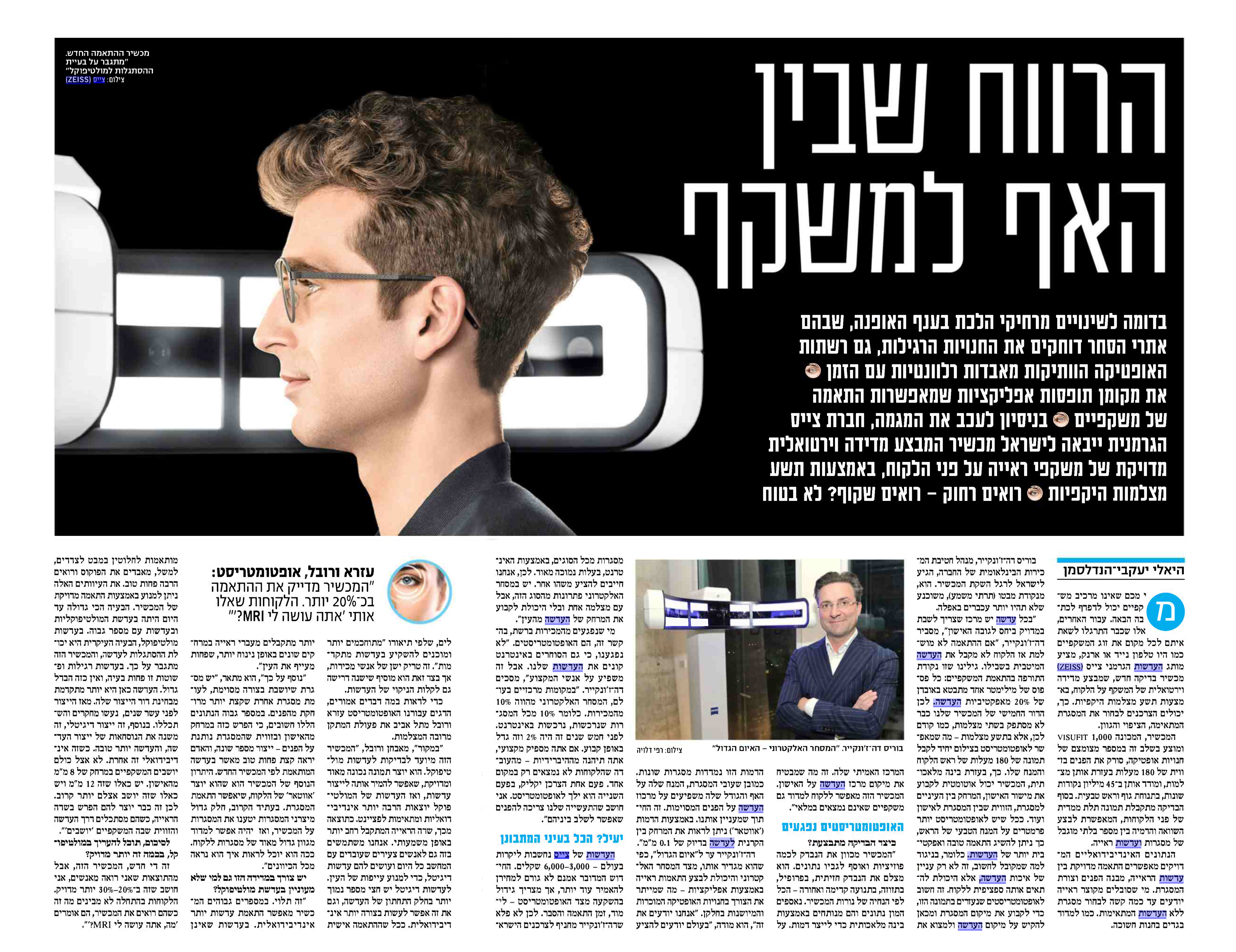 מותג העדשות הגרמני צייס משיק מכשיר בדיקות חדש שמבצע מדידה וירטואלית של המשקף על הלקוח.
